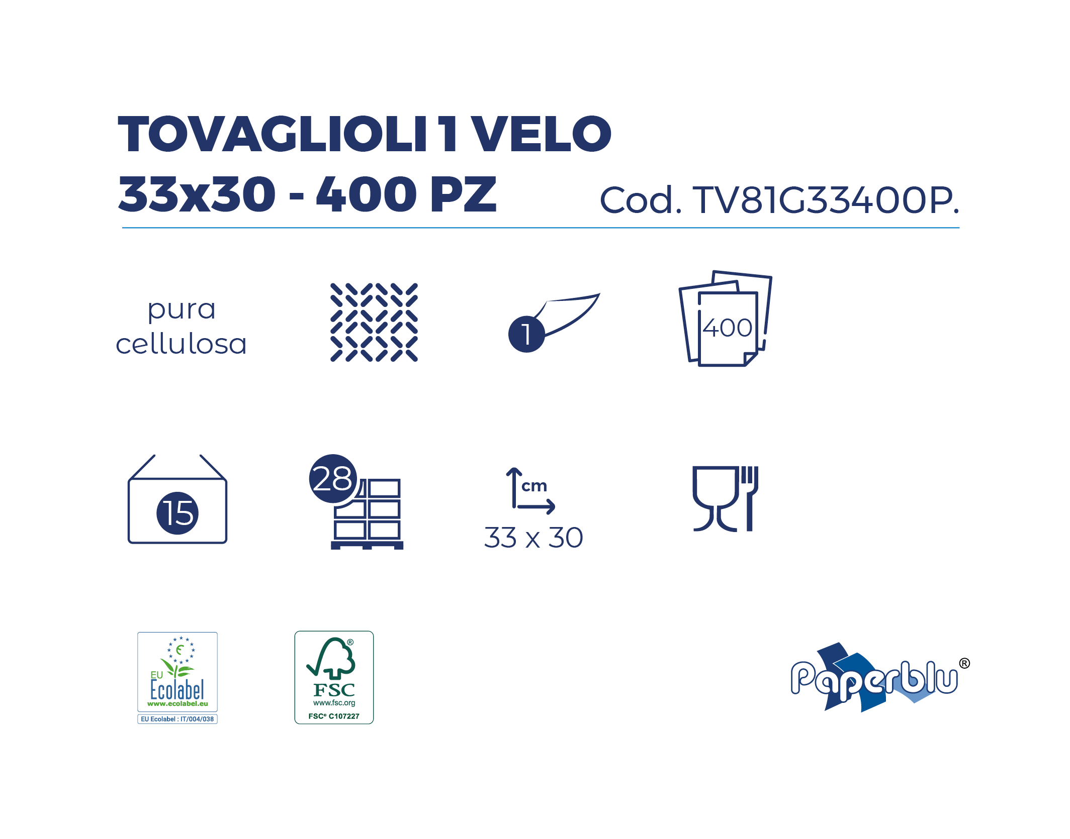 Tovaglioli 1 velo 33×30 400pz TV81G33400P.